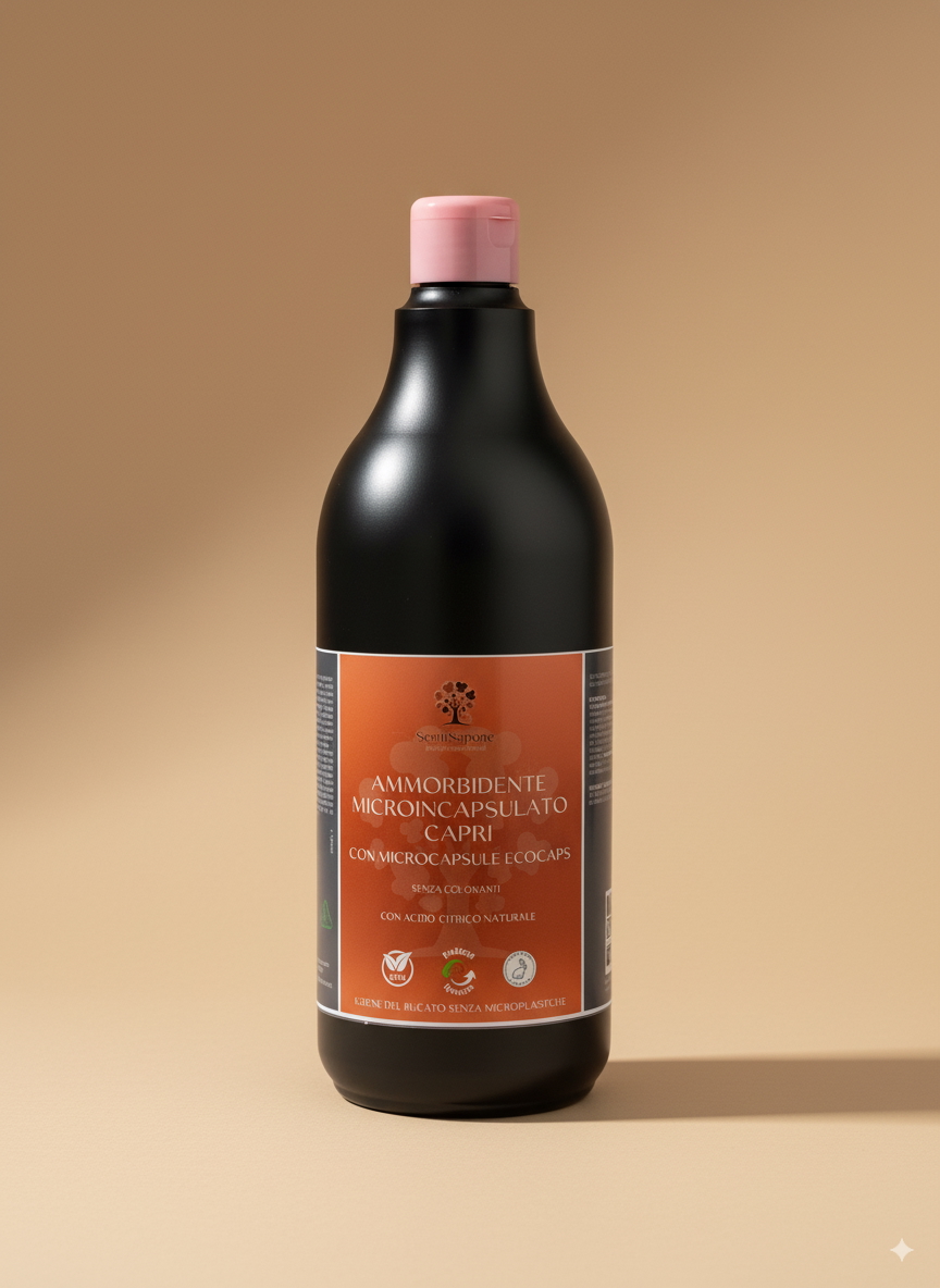 Ammorbidente neutro con acido citrico, senza coloranti né profumi, ideale per pelli sensibili.